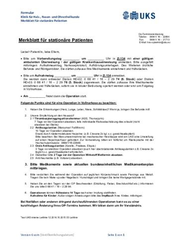 Was Sie sonst noch über Ihren stationären Aufenthalt in der HNO-Klinik am UKS wissen müssen