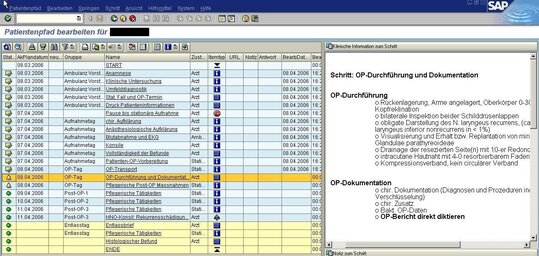 Innerhalb des Krankenhausinformationssystems SAP werden mit dem Modul i.s.h.med pathways der Fa. Siemens (ehemals GSD) aus Berlin alle klinischen Behandlungspfade dargestellt und dokumentiert. Das Modul wurde weltweit erstmalig in unserer Klinik produktiv eingesetzt.