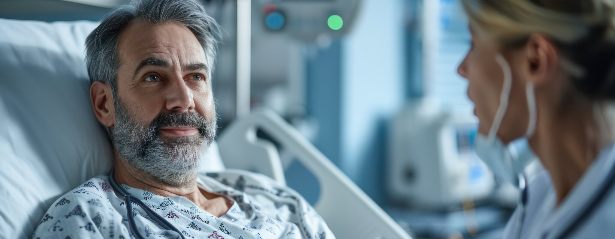 Während des Klinikaufenthaltes nach der Operation werden Sie auf unseren Bettenstationen rund um die Uhr von Pflegefachkräften betreut. Zwei Mal täglich erfolgt eine ärztliche Visite, während der die notwendigen Schritte der Nachbehandlung festgelegt werden. Wir möchten Sie dazu anregen, jederzeit Ihre Fragen oder Unklarheiten zu äußern. Wir sind auch gerne bereit, bei Bedarf mit Ihren Angehörigen ein Gespräch über Ihre Krankheit und den geplanten Verlauf zu führen. Die Dauer des Krankenhausaufenthaltes ist sehr individuell und hängt von der Art der Krankheit, der durchgeführten Operation und Ihrem allgemeinen Gesundheitszustand ab.