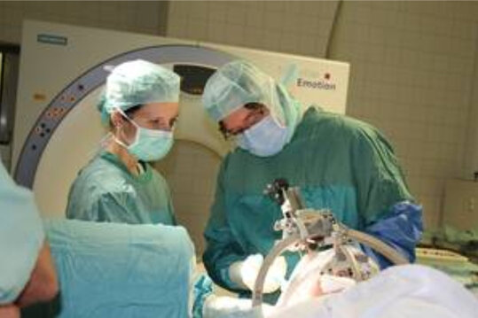 Das neurochirurgische Team besteht aus Prof. Grunert, der in Wien und in Mainz stereotaktische Abteilungen aufgebaut hat und auf eine über 30-jährige Erfahrung auf diesem Gebiet zurückblickt, und Frau Dr. Keiner, die als Oberärztin dieses Gebiet betreut. Zu den Neurologen, die für die präoperative Abklärung, das intraoperative Monitoring und die postoperative Nachbetreuung dieser Patienten verantwortlich sind, zählen federführend Prof. Dillmann, Leiter der Abteilung für Neurophysiologie sowie seine auf dem Gebiet der Parkinson’schen Erkrankung sehr erfahrene Mitarbeiter Dr. Bürmann und PD Dr. Spiegel.