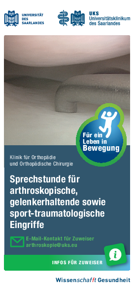 Im Bereich der ambulanten Behandlung in der Klinik für Orthopädie und Orthopädische Chirurgie am Universitätsklinikum des Saarlandes (UKS) halten wir ein breit gefächertes Therapieangebot bereit, das sich unter anderem auf konservative Maßnahmen konzentriert. Das Ziel einer jeden ambulanten Behandlung bei uns ist es, Schmerzen so schonend wie möglich zu lindern, Ihre Bewegungsfähigkeit zu verbessern und die allgemeine Lebensqualität wiederherzustellen oder zu steigern. Dafür müssen Sie weder Ihren Alltag noch Ihr häusliches Umfeld über mehrere Tage hinweg verlassen.