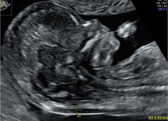 Darstellung der Nackentransparenz bei einem Fetus in 13. SSW