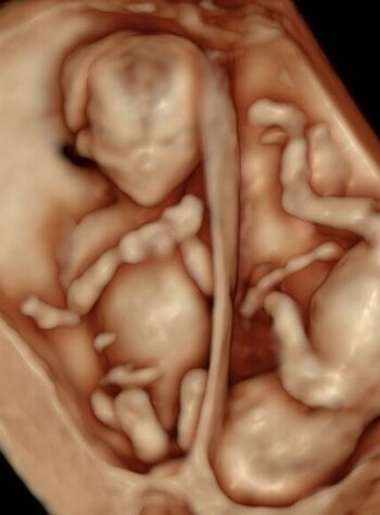 Zwillingsschwangerschaft (dichorial) in der 3D-Darstellung)
