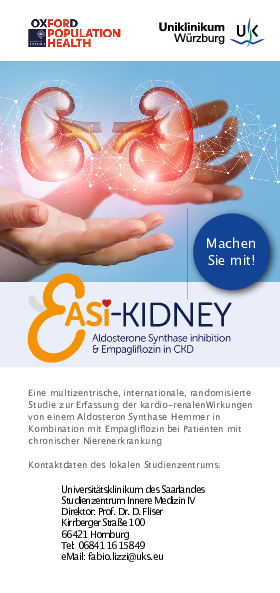 Die EASi-KIDNEY-Studie untersucht, ob das neue Medikament Vicadrostat (BI 690517), ein sogenannter Aldosteron-Synthase-Inhibitor, in Kombination mit Empagliflozin das Fortschreiten von Nieren- und Herzerkrankungen weiter verlangsamen kann.