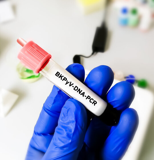 In unserem Projekt ANTIPOLE, das durch die VolkswagenStiftung gefördert wird, erforschen wir Therapieansätze gegen die BK Polyomavirus-Infektion bei Nieren- und Knochenmarks-transplantierten Patienten mittels modernster 3D-Zellkultur- und genomischer Technologien sowie künstlicher Intelligenz (KI).