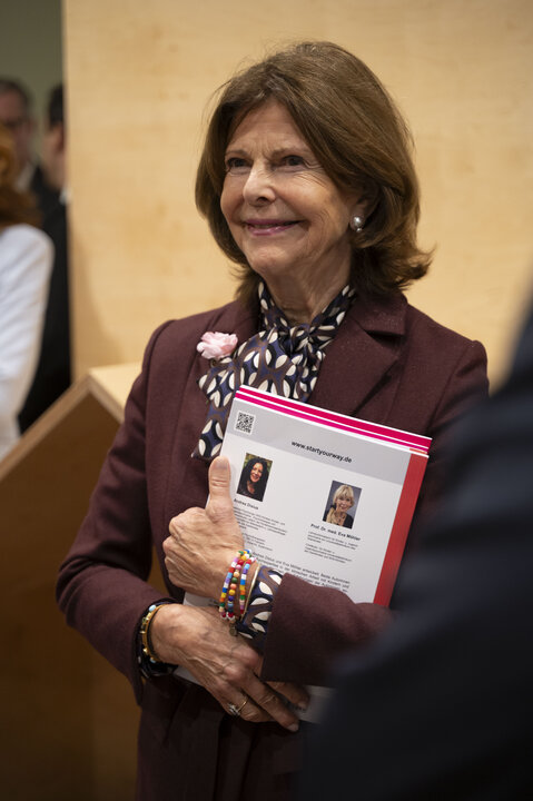 „Kinder sind nicht nur Erwachsene der Zukunft. Sie sind unser Hier und Heute! Ihre Rechte müssen wir wahren und jedes Kind bestmöglich darin unterstützen, als starke und selbstbestimmte Persönlichkeit heranwachsen zu können. Das Childhood-Haus Saarland kann hierzu einen wichtigen Baustein beitragen, und ich wünsche ihm das bestmögliche Gelingen“, erklärte Ihre Majestät Königin Silvia von Schweden, die sich im Anschluss an ihre Ansprache im voll besetzten Hörsaal bei einem Rundgang durch das Childhood-Haus einen Eindruck von den Räumlichkeiten verschaffte und das Gespräch mit den dort Beschäftigten suchte. Die von ihr 1999 gegründete World Childhood Foundation macht sich weltweit für das Recht auf eine Kindheit frei von sexualisierter Gewalt und Missbrauch stark, hat in Deutschland bereits zehn Childhood-Häuser auf den Weg gebracht und trägt am elften Standort in Homburg unter anderem die Kosten für eine gerichtssichere Vernehmungstechnik, für die gesamte medizinische Ausstattung, für die Möblierung und für eine Projektleiterstelle zur Implementierung der Workflows in den ersten sechs Monaten.