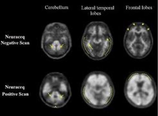 β-Amyloid-Ablagerungen sind Eiweißablagerungen, die ein typisches Krankheitsmerkmal der Alzheimer-Erkrankung sind. Die Amyloid-Plaque-PET/CT ermöglicht nun erstmals bei lebenden Patientinnen und Patienten den Nachweis der Amyloid-Plaques. Die Ergebnisse der Untersuchung müssen immer zusammen mit der Anamnese – also der im ärztlichen Gespräch erhobenen Krankengeschichte – interpretiert werden. Bei einem negativen Untersuchungsergebnis, also wenn keine Plaque gefunden wird, kann eine Alzheimer-Erkrankung jedoch sicher ausgeschlossen werden.