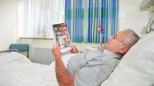 In der Klinik für Nuklearmedizin am UKS verfügen wir über Zweibett-Patientenzimmer auf der Therapiestation RN01, ausgestattet mit einer sanitären Einrichtung sowie Fernseher, Telefon und Internetanschluss.