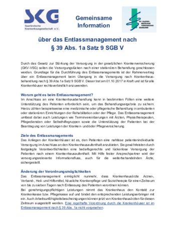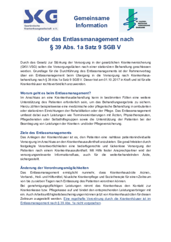 Den Rahmenvertrag über ein Entlassmanagement beim Übergang in die Versorgung nach Krankenhausbehandlung nach §39 Absatz 1a SGBV (11. Änderungsvereinbarung vom 26.02.2024) finden Sie auf der Homepage der Deutschen Krankenhaus Gesellschaft (DKG)