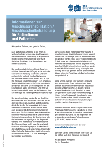 - Antragstellung Rehabilitation (Beratung und Klärung des Anspruchs, ggf. Einleitung weiterer Maßnahmen)