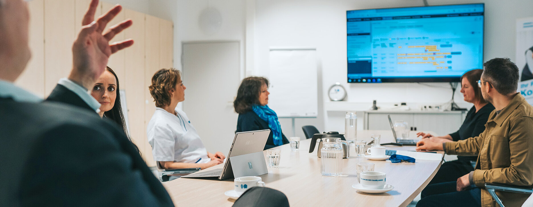 Hier versorgen wir im Hintergrund mit rund 450 Mitarbeiterinnen und Mitarbeitern alle Belange des UKS. Ob es um die Beschaffung von Büromaterial geht oder die Ausschreibung eines Linearbeschleunigers, den Transport von Patienten oder medizinischen Produkten, die Aufbereitung medizinischer Instrumente, die Reinigung von Wäsche und Bekleidung oder aber die Essensversorgung unserer Patienten und Mitarbeiter - das Dezernat Wirtschaft kümmert sich um alle Belange der Versorgung.