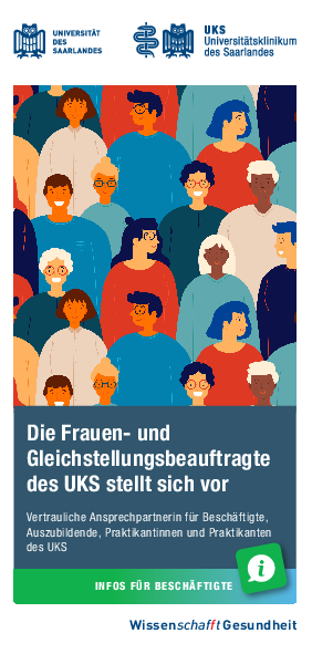 - Umsetzung von Landesgleichstellungsgesetz des Saarlandes (LGG) und Allgemeinem Gleichbehandlungsgesetz (AGG) am UKS