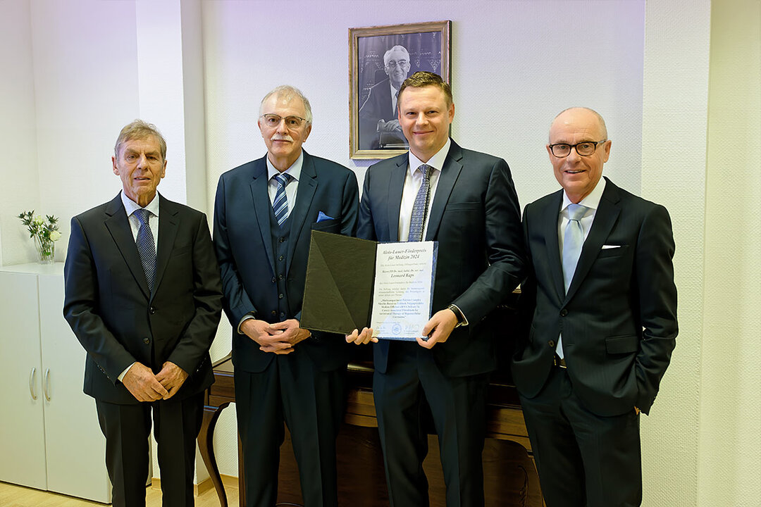 Der mit 8.000 Euro dotierte Alois-Lauer-Förderpreis für Medizin ging an PD Dr. med. habil. Dr. rer. nat. Leonard Kaps, Oberarzt und Leiter der Translationalen Forschung in der Klinik für Innere Medizin II am UKS, für seine Forschungen zum hepatozellulären Karzinom (HCC), der häufigsten Form von primärem Leberkrebs. Das HCC ist schwer zu behandeln, da der Tumor resistent gegenüber klassischer Chemotherapie ist.