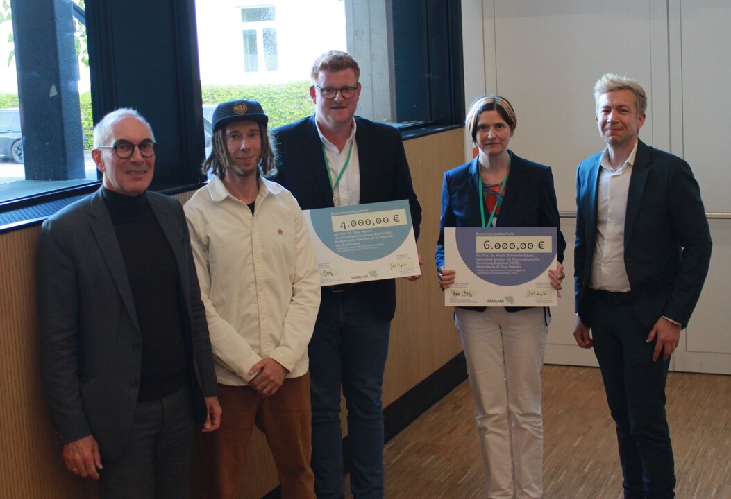 Beide Preisträger teilen sich die mit 10.000 Euro dotierte Auszeichnung – 4.000 Euro gingen nach Homburg an Dr. Maurer und sein Team, 6.000 Euro nach Saarbrücken ans Helmholtz-Institut.