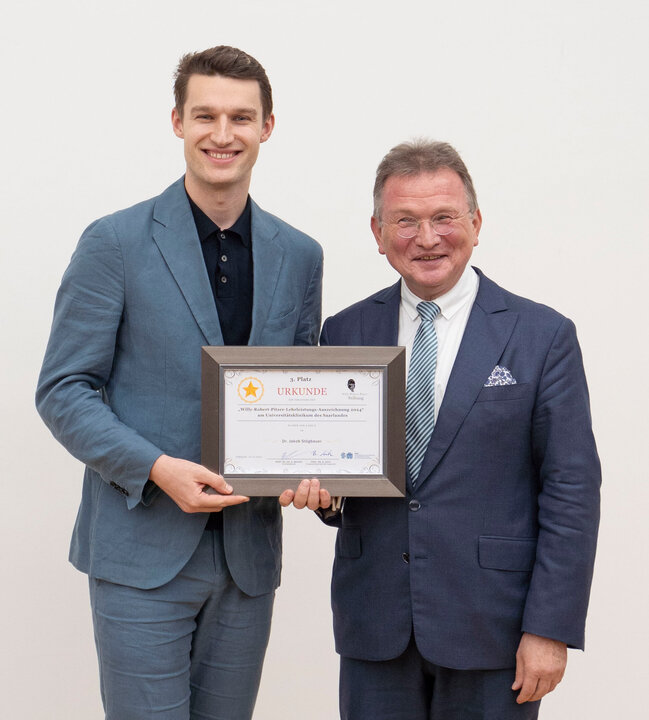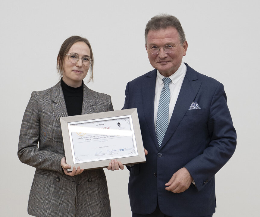 Alle sechs nominierten Ärztinnen und Ärzte überzeugten nicht nur die Studierenden durch ihr großartiges und vorbildliches Engagement in der PJ-Lehre am UKS. Auch die Jury war begeistert von allen sechs Lehrkonzepten. Viola Horneff sammelte jedoch die meisten Punkte beim anonymen Ranking und erhielt damit den 1. Platz der Willy-Robert-Pitzer-PJ-Lehrleistungs-Auszeichnung, gefolgt von Dr. Tim Berger und Dr. Jakob Stögbauer.