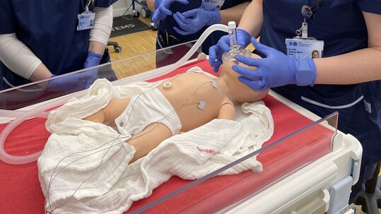 Die so genannte Rea-Einheit von Löwenstein Medical entspricht den Erstversorgungseinheiten, die in der Kinderklinik des UKS und im Kreißsaal im Einsatz sind. Dadurch erhalten die Medizinstudierenden und angehende Ärztinnen und Ärzte im Praktischen Jahr, aber auch Praktikanten und Auszubildende in der Pflege nun die Möglichkeit, unter realitätsnahen Bedingungen die Versorgung von Neugeborenen zu trainieren. Unter der Anleitung erfahrener Kolleginnen der interdisziplinären Kinderintensivstation wie Dr. Sarah Ruffing (Assistenzärztin, Pädiatrische Kardiologie) und Dr. Theresa Faas (Fachärztin für Kinder- und Jugendmedizin, Allgemeine Pädiatrie und Neonatologie) können sie mithilfe einer Trainingspuppe und der neuen Rea-Einheit Neugeborenentrainings wie die Erstversorgung im Kreißsaal durchführen, um optimal auf den Berufsalltag vorbereitet zu sein.