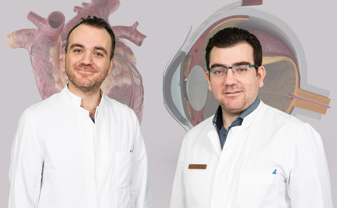 Unter der Leitung von Prof. Dr. Michael Böhm und Prof. Dr. Berthold Seitz haben der Kardiologe PD Dr. Amr Abdin, Leiter der Devicetherapie in der Klinik für Innere Medizin III des UKS, und sein Bruder PD Dr. Alaadin Abdin, Geschäftsführender Oberarzt der Augenklinik des UKS, gemeinsam an einem Forschungsprojekt zu Veränderungen der Mikro-Gefäßstruktur der Netzhaut bei akuter Herzinsuffizienz gearbeitet und dabei neue, wegweisende Erkenntnisse gewonnen.