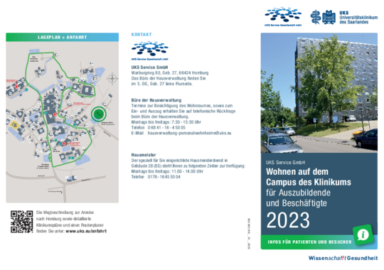 Die UKS Service GmbH verwaltet die Personalwohnheime Gebäude 27 und 28 mit etwa 200 Zimmern, die an Auszubildende und Beschäftigte des Universitätsklinikums des Saarlandes vermietet werden.
